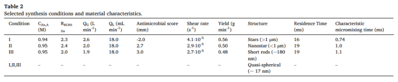 2) 25 papers (references [25–27,35–57]) were surveyed for wet chemical precipitation methods that are compatible with annular microreactor synthesis to determine relevant synthesis variables. These synthesis variables were determined to be the zinc reagent anion (nitrate, sulfate, acetate or chloride), the alkaline reagent (NaOH or KOH), zinc and alkaline reagent concentrations and mixing intensity.